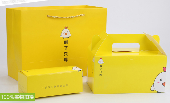 炸雞配啤酒是世界杯期間看球賽的標配,隨著世界杯的臨近,炸雞也逐漸火了起來。試想一下,跟幾個好友一起品球,一起啃著炸雞,是多么愜意的一件事。我公司為廣大炸雞店老板們量身定制各種樣式的炸雞外賣打包盒及外賣紙質手提袋,如下面這款: